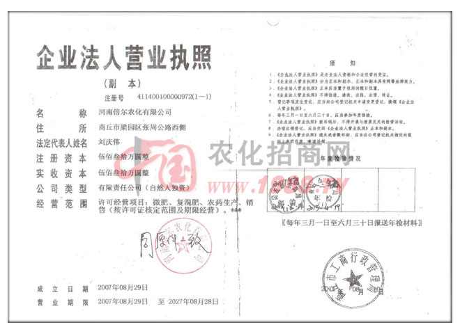 河南倍爾農(nóng)化有限公司是經(jīng)河南省發(fā)改委批準,國家發(fā)改委備案,國家工信部認定,由河南省長葛市農(nóng)用生物藥廠改制、更名,并遷址于河南省商丘市梁園區(qū)農(nóng)藥化工工業(yè)園的國家農(nóng)藥農(nóng)肥定點生產(chǎn)企業(yè)。創(chuàng)建于1988年,具有一定的歷史和資源優(yōu)勢。新廠區(qū)占地面積2萬多平方米,新建高標準、規(guī)范化的農(nóng)藥粉劑、乳油、水劑、除草劑、水溶肥等專用生產(chǎn)車間,具有數(shù)條自動化液體灌裝生產(chǎn)線,數(shù)臺(套)粉劑、顆粒劑微電腦控制全自動生產(chǎn)包裝機。配備有國內(nèi)先進的農(nóng)藥、肥料檢測儀器和設備。